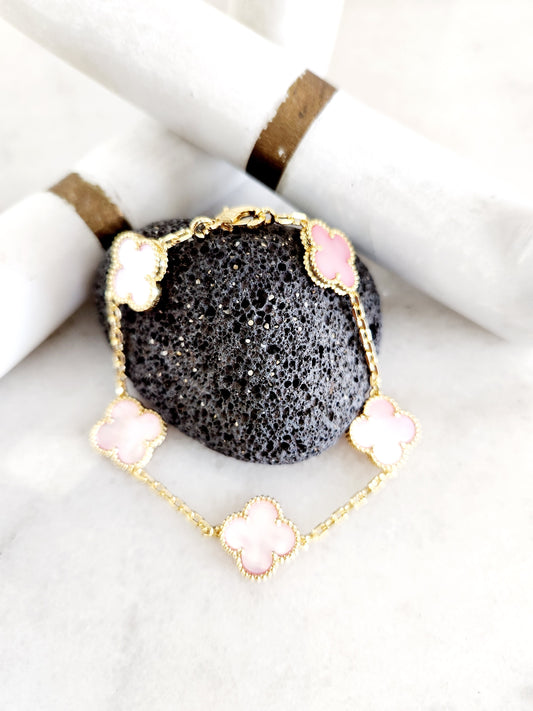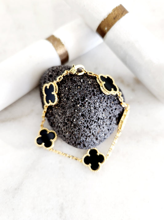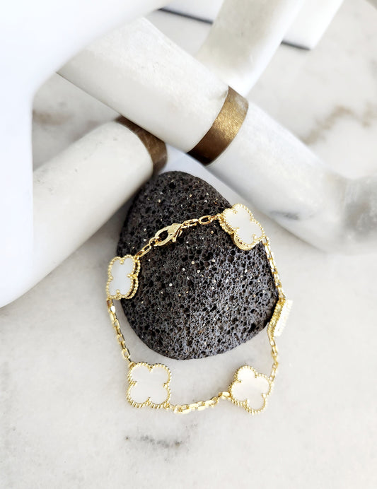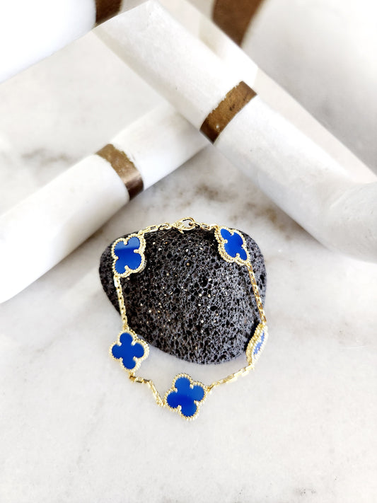 Inspired by the timeless clover motif, The Cholé Collection features five-petal designs symbolizing grace, favor, and feminine elegance. Each bracelet is a radiant blend of gold and enamel — crafted to celebrate the beauty of divine alignment and everyday luxury.