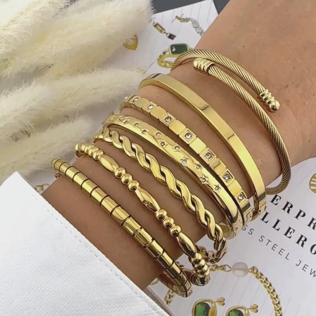 Minimalist meets island elegance. The Luxe Life Bangle offers a sleek, polished gold finish—perfect for stacking or standing solo in understated sophistication.